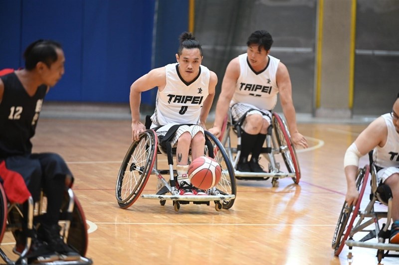 輪椅籃球中華隊隊長呂駿逸(左2)參與輪椅籃球賽事。圖/體育署提供