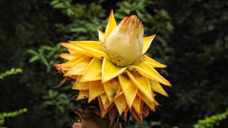 地湧金蓮又稱地金蓮、地湧蓮、地母金蓮、千瓣蓮花,原產地在中國雲南省,屬於芭蕉科植物。