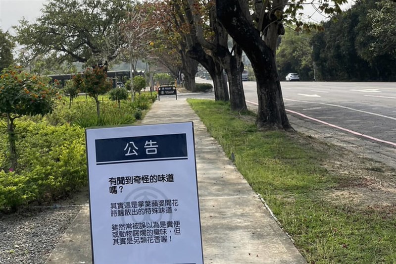 館方人員表示,為了避免引起誤會,加上趁機進行生態教育,已在適當地點設置告示牌,介紹氣味由來,也提醒遊客注意。