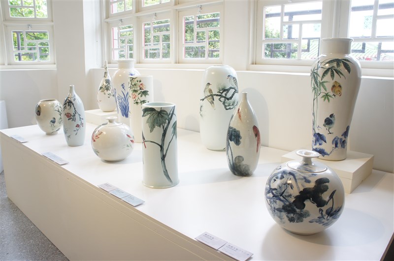 林文嶽說明,「白河白」來自蓮蓬灰飽含鈣質成份的濁化透光性質,「關嶺青」則是溫泉濁泥還原鐵質燒成的青。「歷史上,青瓷釉面通常不表現『畫』,畫跡留在青釉的中間層次(釉中彩)有相當的難度」。但他透過在地材料、不斷地研究實驗,在繪畫與窯燒來回反覆對照,修正、累積經驗,獨創出青瓷釉中彩的創作風格。