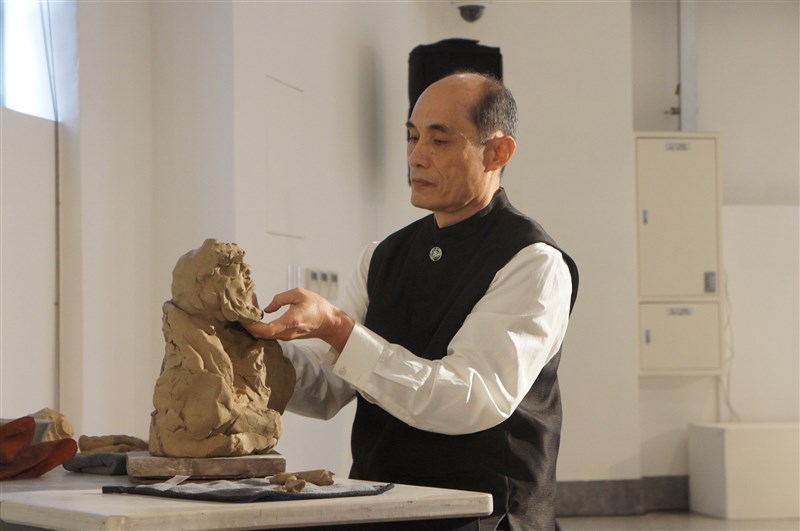 陶藝家林文嶽現場示範手捏達摩作品。圖/工藝中心提供