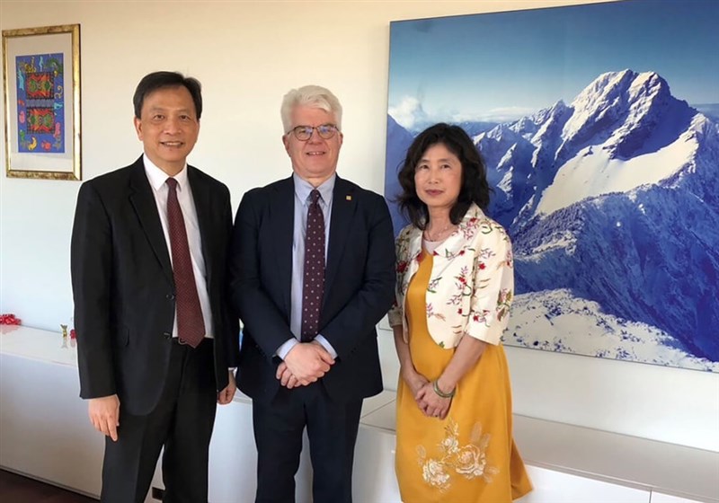 駐瑞典代表谷瑞生(左)在代表處與瑞典皇家理工學院副校長奧斯特隆德(中)合影。圖/駐瑞典代表處提供
