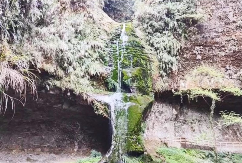 【本報南投訊】南投竹山杉林溪松瀧岩瀑布高低落差達38公尺,豐水期水源充沛、水勢壯闊,而有「杉林溪首景」之稱,但因中南部旱象未解,原本氣勢磅礡的巨瀑,僅剩涓涓細流,遊客看了直呼失望、可惜,甚至被戲稱成了「尿尿小童」。