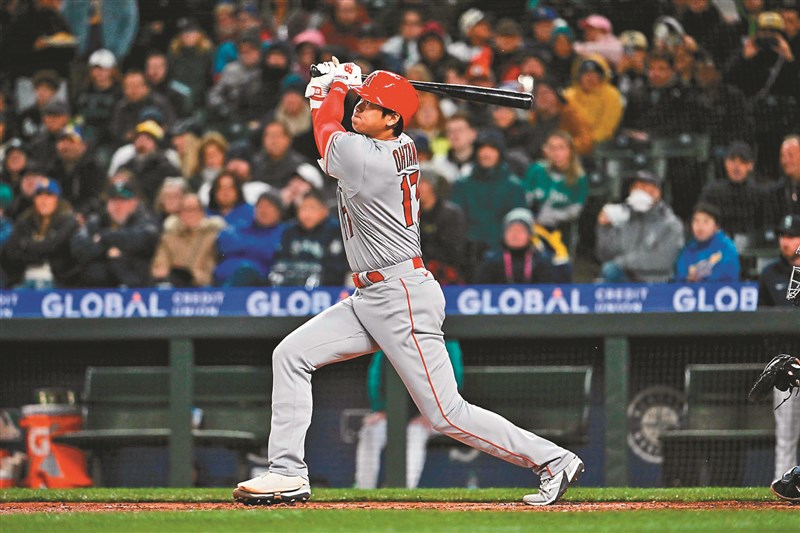 新研究發現,氣候變遷會讓MLB全壘打產量增加,圖為洛杉磯天使日籍球星大谷翔平,3日敲出全壘打。圖╱法新社