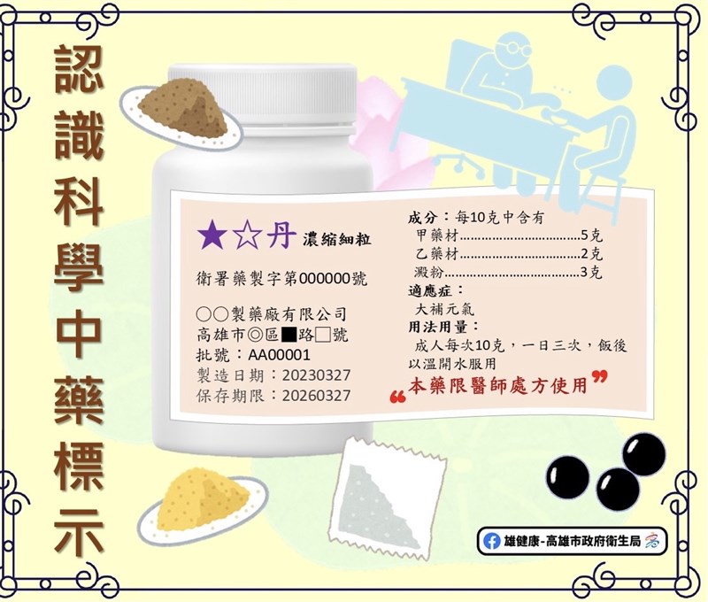 服用科學中藥務必看清標示及內含成份、用法,並經醫師處方使用。圖/高雄市衛生局提供