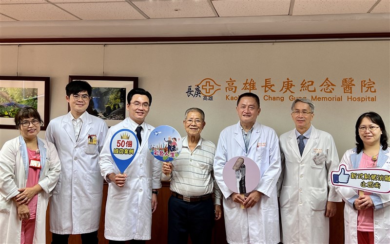 高雄長庚醫院以新型內視鏡射頻燒灼術改善了長輩(右4)因「放射線直腸炎」產生的血便及貧血困擾。圖/高雄長庚醫院提供