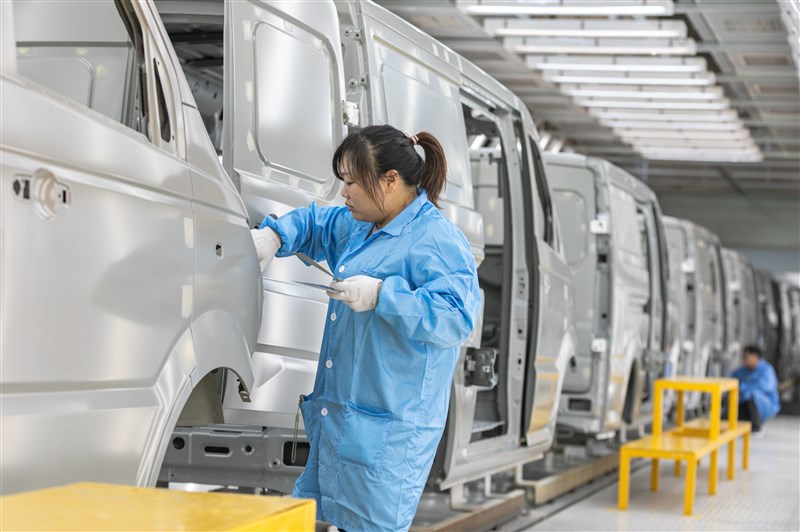 圖為中國江西贛州一家汽車製造公司內忙碌的工人。圖/中新社