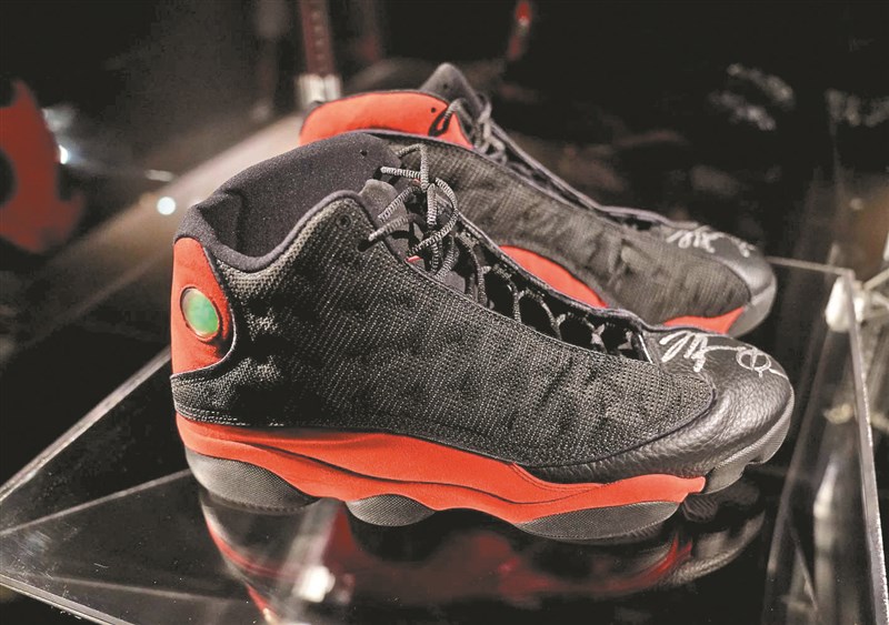 一雙喬丹穿過的球鞋,以6707萬元售出。圖/法新社