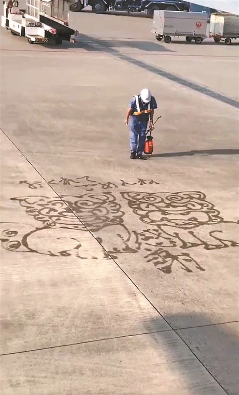 航班延誤 地勤水槍畫風獅爺致歉 |2023.04.13 語音朗讀 1019觀看次 字級 大 中 小 日本沖繩縣班機延誤,一名地勤工人用水槍作畫、寫字表達歉意。圖/取自網路 【本報綜合外電報導】日本網友「@kanetomo0331」收到朋友傳來一則影片,沖繩縣那霸機場 (Naha Airport)日前因班機延誤,乘客在飛機上等待過程中,看見地面上一名穿著工作制服的地勤工人,正用高壓水管畫出兩隻風獅爺,上方還用日語寫下「抱歉遲到了」。從影片畫面中可以看到,即便畫作水痕在陽光照射下很快就蒸發,他也迅速補上輪廓,這名地勤完成後還向機上乘客鞠躬並揮手,讓網友看了都感到十分貼心。 前一篇文章 喬丹最後一舞球鞋 6707萬成交 下一篇文章 圈養20年 餐廳熊獲救將野放 熱門新聞 01【遨遊藝事】巴黎 黛瑪兄弟茶館(Dammann Frères)2026.02.0602極樂寺彩繪燈籠 三好理念廣傳校園2026.02.0403兩岸新聞營師生 認識人間佛教2026.02.0504佛教藝文本土化 昆士蘭美術館團隊訪中天寺2026.02.050530冊佛教徒必讀經典 台北書展亮相2026.02.0406南韓城南高中、普中 棒球隊切磋球技2026.02.0407印尼佛教學院開學 培育國際弘法僧才2026.02.0508社區學童岡山講堂行春 學三好迎接午馬年2026.02.0509向前有路 光明在望2026.02.0510立春養生疏肝理氣 飲食調養少酸多甘2026.02.04 訂閱電子報 台北市 天氣預報 台灣一週天氣預報 相關報導 情侶把貓當自拍架 喵星人賞白眼陸多地開兩會 機器人記者忙跑新聞2青年花518天 從法國走到上海寰宇新聞 一周回顧姆明80歲 芬蘭總統攜130人接力朗讀景區高薪徵項羽 身高門檻190難覓