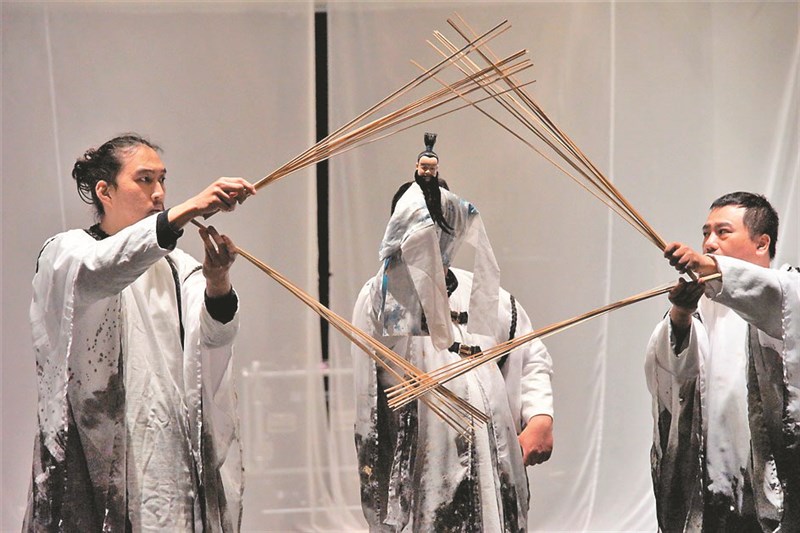 【記者曹麗蕙台北報導】二○二三台灣戲曲藝術節雙旗艦製作之一《壵》(音同「壯」),十四日起連三天在台灣戲曲中心小表演廳上演。《壵》由真快樂掌中劇團擔綱演出,徹底解放布袋戲傳統彩樓戲台的空間框架,從兩塊大布幔與戲服延伸「行動戲台」,透過布袋戲、媒材物件、空間氛圍、肢體韻律及音樂場域等元素的結合,探問「賢士」、「義士」、「烈士」的「犧牲」。