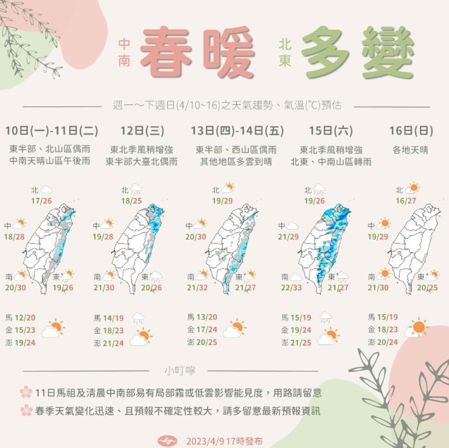 氣象局說,東北季風16日就會減弱,但北部及東北部清晨天氣仍涼,白天起氣溫明顯回升,16至18日,各地都是多雲到晴的天氣。