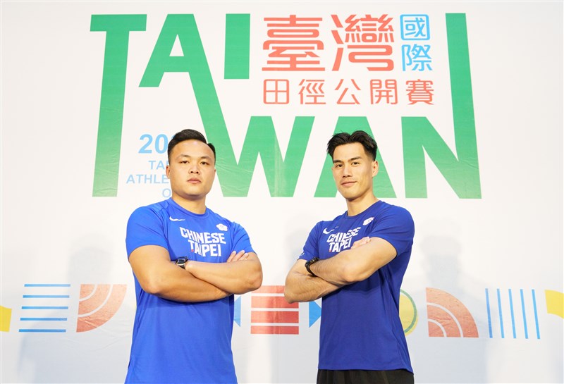 楊俊瀚(右)與鄭兆村(左)為台灣國際田徑公開賽站台。圖/田協提供