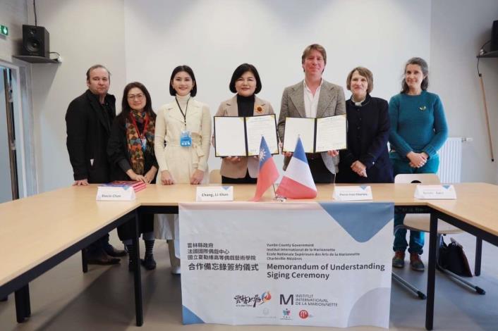 雲縣府與法國高等偶戲學院簽MOU,傳承布袋戲技藝。圖/縣府提供