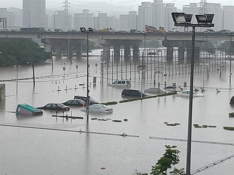 都會河濱公園常成為停車場,但遇颱風來襲,水門一關閉若來不及移車,往往就會變成泡水車。圖/讀者提供