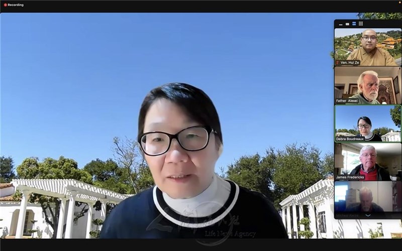 Regarding the next meeting, convener Michael Kerze hopes that representives form each religion can provide practical examples to share with everyone based on the discussions about compassion in this meeting. Participants in the online discussion include representatives from various religions, including Father Alexei Smith from St. Andrew's Church of the Catholic Church, Michael Kerze, professor at Los Angeles Valley College, James L. Fredricks, professor at Loyola Marymount University, Susana Santana of the Holy Text Cooperative Association, Adrienne Hament of St. Ignatius Church, and Buddhist representatives including Venerable Abbot Chao Chu of Los Angeles Bodhi Temple,, Veberable Hui Ze of Hsi Lai Temple, Debra Boudreaux of the Tzu Chi Foundation, and Sabrina Ho.