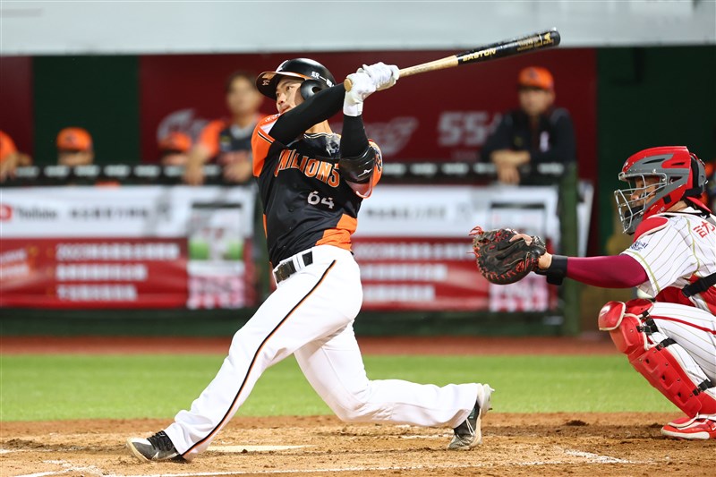 獅隊林靖凱(左)2局轟出3分砲,助隊擴大領先。圖/中央社