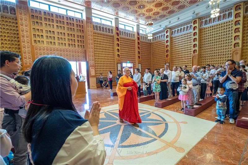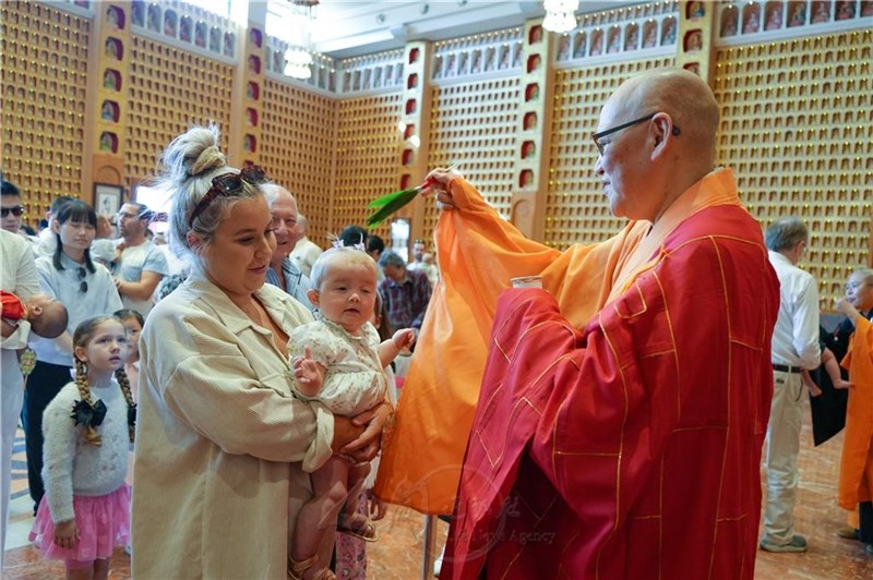 Parents were touched to see their children participate in the "Yu Lin Baby Blessing Ceremony" and grow up in their religious beliefs with the blessings of the Buddha. Ms. Mo Danning, who lives in Canberra, is grateful for her relationship with Nan Tien Temple, where she previously volunteered. She often shares Buddhist thoughts with her husband Troy Tatnell-Blacker, and their 1-year and 9-month-old daughter Luna has been influenced since childhood, often folding her hands and worshipping. The couple hopes their child can receive the blessings of the Buddha from a young age and build a harmonious and Buddhist family. Kristi Archer prayed for the Buddha's blessings so that the babies could grow up with the right values and be kind to others, and serve the society in the future.