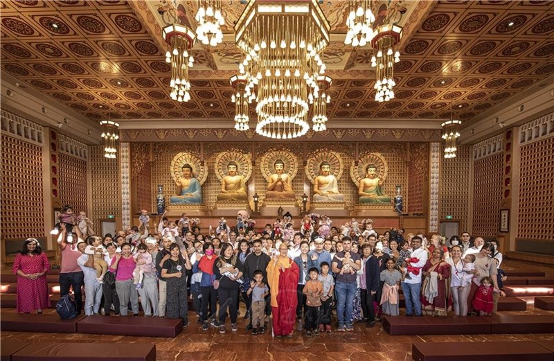 To celebrate the Buddha's birthday, Fo Guang Shan Nan Tien Temple held a special "Yu Lin Baby Blessing Ceremony" in the Mahavira Hall for 50 infants on April 8th. The ceremony was presided by Venerable Miao You, a board member of Nan Tien Institute, with nearly 200 parents and relatives in attendance witnessing the event.