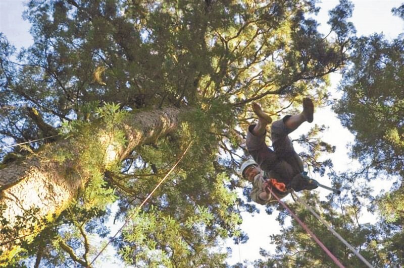 【本報台北訊】二十年前,熱愛登山的沈介文為了研究,學習用繩索攀樹,登上最高可達五十公尺的台灣雲杉,揭開樹頂毬果的祕密;離開研究後,他仍繼續帶著孩子們攀樹,把對樹木的關懷傳給下一代。