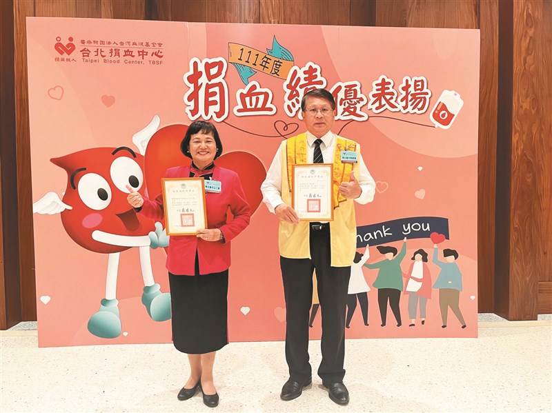 【記者陳玲芳台北報導】台灣一直以來有許多默默挽袖的捐血人,讓病人的生命得以延續,為此,台北捐血中心昨日於關渡靜思堂B1人文講堂舉辦「111年度捐血績優表揚大會」,表彰捐血人的義行義舉。國際佛光會中華總會連續多年獲選為捐血績優團體,今年由北區協會長周聰發代表上台領獎。