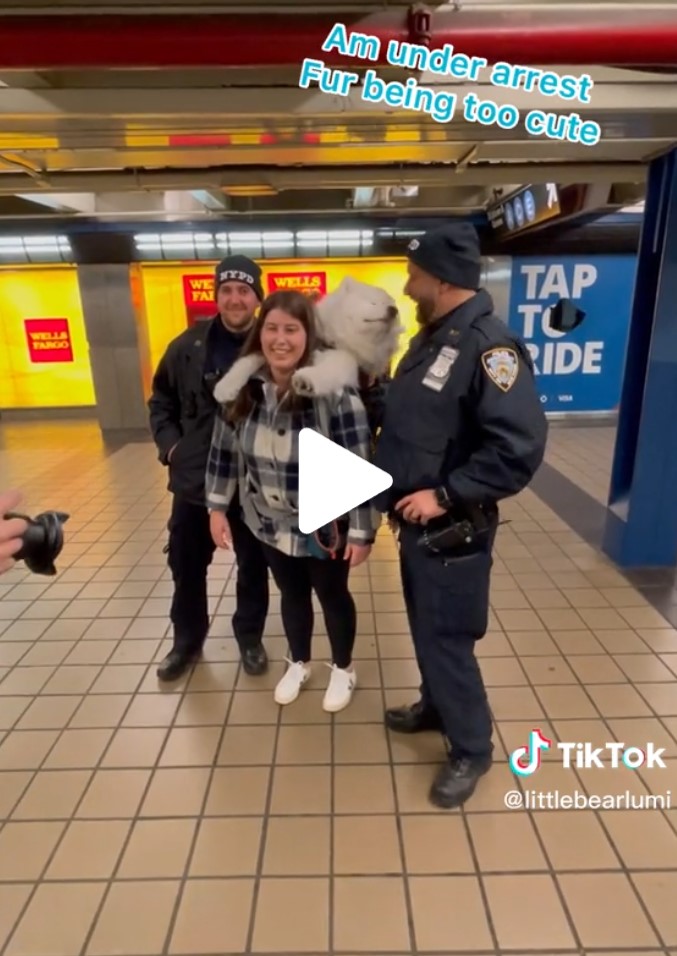 背24公斤薩摩耶搭地鐵! 超萌影片爆紅 |2023.04.20 語音朗讀 2552觀看次 字級 大 中 小 紐約一名飼主背自家薩摩耶搭地鐵,牠待在專用揹包可愛畫面引起網友熱烈討論。圖/tiktok@littlebearlumi 【本報綜合報導】美國一名飼主平時就會帶著愛犬趴趴走,近日為了符合紐約地鐵「寵物不落地」的規定,於是她把24公斤重的薩摩耶放進後背包,狗勾也配合的雙手扶住肩膀,露出一顆療癒的毛茸茸的大頭在網路上爆紅。飼主霍爾農(Jackie Hornung)日前帶著愛犬「盧米」(Lumi)搭乘紐約地鐵,影片中可以看到超大隻的薩摩耶被放進主人的後背包,一雙大手掌就這樣扶好肩膀,可愛地伸出舌頭從樓梯一晃一晃的走了下來。由於盧米體型本來就不小,進到後背包後硬是比主人多出一顆頭,這番最萌身高差意外融化不少網友。圖/tiktok@littlebearlumi雖然這樣的行為看起來相當詭異,不過一切都是為了符合紐約地鐵規定,寵物必須放進容器才能夠進到車站,避免意外打擾到其他乘客。霍爾農進一步解釋背包空間其實相當寬敞,盧米完全可以舒服地坐在裡頭。搭車時也常常有人想摸摸盧米的頭,紛紛表示這樣看起來非常可愛。影片瀏覽次數很快衝破600萬大關,數千則留言表示「看起來好像一朵雲」「牠只是個孩子啊」「太可愛了啦」「大丹狗表示:」「我會看到上班遲到」。飼主霍爾農(Jackie Hornung)帶著愛犬「盧米」(Lumi)搭乘紐約地鐵影片爆紅後,還被邀請上電視節目,牠可愛模樣融化現場主持人。 前一篇文章 屋主看手機!抬頭驚見巨熊闖屋內距離不到1公尺 下一篇文章 日本野生動物奇觀 熱門新聞 01【遨遊藝事】 威尼斯沉船書店2025.12.2902【獻給動物朋友的詩】 最可愛的動物詩路2025.12.2503【中醫專欄】 中醫防失智之道2025.12.2704【寰宇采風】京都最溫柔的秋色:紅葉永觀堂2025.12.2605台北道場歲末聯誼 感謝義工同行菩薩道2025.12.2706社論--悲憐天下父母心2025.12.2507南瓜籽紅豆黑芝麻 含天然助眠營養素2025.12.2608世界神明聯誼會 佛神共祈和平2025.12.2609新馬寺率大馬校長團 訪佛光大學2025.12.2710宜蘭7.0地震 921後第3強震2025.12.29 訂閱電子報 台北市 天氣預報 台灣一週天氣預報 相關報導 【動物奧斯卡獎】猜猜誰最會演(中)【動物奧斯卡獎】猜猜誰最會演(上)章魚發燒友 成藍調音樂家動物比你想的更聰明