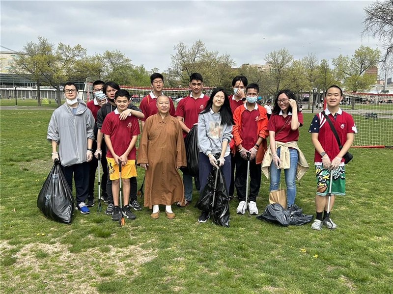 Venerable Miao Zhu led BLIA YAD New York to clean up the environment at Flushing Meadow Corona Park. photo/I.B.P.S. New York