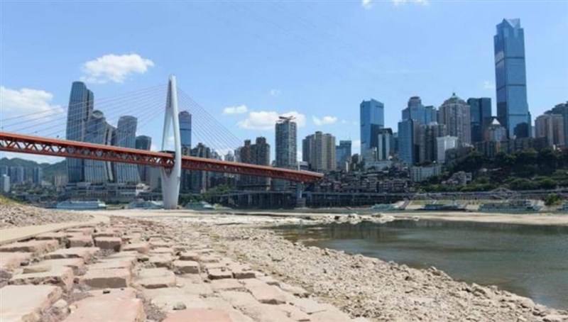 2022年8月,重慶最高達44.1℃,嘉陵江水位下降,部分江灘裸露在外。圖/中新網