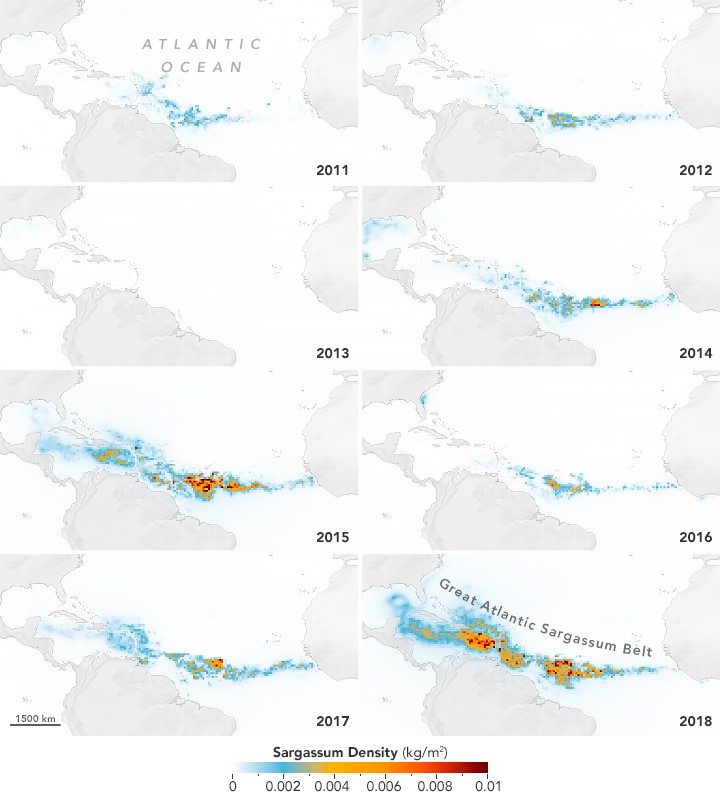 巨大海藻帶可從太空看見 海藻危機恐引重大擱淺 |2023.04.21 語音朗讀 1768觀看次 字級 大 中 小 加勒比海的聖馬丁島上佈滿馬尾藻的海灘。圖/擷取自Moldychum網站 【本報綜合外電報導】自2011年以來,幾乎每年春季和夏季,大西洋中部都會出現大量海藻。這一大片漂浮的棕色海藻斑塊,被稱為馬尾藻,是從非洲西海岸延伸到墨西哥灣,被稱為「大大西洋馬尾藻帶」。2023年3月,科學家發現漂浮的馬尾藻數量為歷年3月同期最多數量。根據南佛羅里達大學(USF) 研究人員估計,3月份的馬尾藻總量約為1300萬噸,破了歷年3月同期紀錄。今年到目前為止,創紀錄的馬尾藻主要集中在東大西洋中部;此外,大西洋和加勒比海的其他地區,馬尾藻的量也是很豐富。圖/NASA網站據了解,因為巨大的海藻大量繁殖,威脅著美國佛羅里達和墨西哥的海灘。這厚厚的馬尾藻橫跨大約5000英里,大約是美國寬度的兩倍,漂浮在墨西哥灣和西非海岸之間的厚厚的馬尾藻,橫跨大約5000英里,這一排棕色海藻從太空中都能看到。在開闊的海洋中,馬尾藻通過為海龜、無脊椎動物、魚類和鳥類提供棲息地,以及通過光合作用產生氧氣來促進海洋健康。但海岸附近海藻過多時,會使某些海洋物種難以移動和呼吸;當馬尾藻大量沉入海底時,會使珊瑚和海草窒息;在海灘上,腐爛的馬尾藻釋放出硫化氫氣體,聞起來像臭雞蛋。這有可能對海洋生態和當地旅遊業造成重大問題。馬尾藻密度通常在6或7月達到頂峰,距離現在還有幾個月,但3月時有跡象顯示,2023年的繁殖量可能是有史以來最大的。南佛羅里達大學光學海洋學實驗室表示,隨著馬尾藻繼續向西移動,加勒比海和佛羅里達州東海岸將不可避免地發生重大擱淺事件。圖/NASA網站 前一篇文章 至少栽種30年以上!4米高「神級」鹿角蕨現身 下一篇文章 冰川持續融化 北極熊恐不到80年滅絕 熱門新聞 01【閃文集】 駝峰天使2025.11.0402台中新社花海 重現經典卡通2025.11.0603WTA、ATP年終賽 獎金創新高2025.11.0704佛光佈教師、友愛服務隊 精進行佛2025.11.0605《365日》贈嘉義香湖國際大飯店 佛光人結書香善緣2025.11.0606星雲大師全集【傳記】百年佛緣─生活篇 我的衣食住行 5 - 22025.11.0407星雲大師全集【傳記】百年佛緣─生活篇 我的衣食住行 5 - 32025.11.0508腸道是人體第二大腦 影響情緒睡眠免疫力2025.11.0409山本由伸 拚美職首座賽揚獎2025.11.0510古老金幣2025.11.05 訂閱電子報 台北市 天氣預報 台灣一週天氣預報 相關報導 日月潭沒降雨蓄水率增加 水力發電助攻屏東書院園區公告 不能再亂餵鳥類及野生動物 尊重原民文化 七彩湖擬畫保護區盼善意對待海洋 屏東再啟動回收廢漁網計畫要維護生態 丹大地區劃設保護區桃園市復興區櫻花開 罕見「藍喉太陽鳥」現身