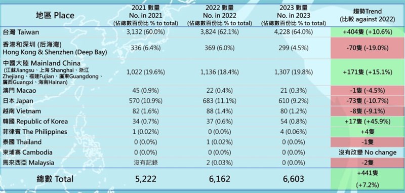 全球黑面琵鷺6603隻創新高 台灣占64% |2023.04.22 語音朗讀 1889觀看次 字級 大 中 小 生態觀察家暨攝影師蘇家弘在布袋鎮新岑溼地,發現逾百隻換繁殖羽的成群黑面琵鷺,鳥頂豎立金黃色鳥羽,非常美麗,有如「金毛獅王」。圖/蘇家弘提供 【本報綜合報導】香港觀鳥會發布2023黑面琵鷺全球同步普查已於1月6至8日完成,全球數量達6603隻,創歷年新高,比去年增加7.2%;台灣仍是最主要棲息地,有4288隻,較去年3824隻多了10.06%。今年度黑琵全球數量達6603隻,對比中華民國野鳥學會發布2022年全球普查有6162隻,2023年增加了441隻、成長7.2%。香港觀鳥會統計,2023年的普查覆蓋全球約130個地點,數量的成長主要來自台灣、中國大陸、南韓,而且台灣持續成為最主要棲息地,全球約64%、4228隻黑面琵鷺在台灣度冬,比去年的3824隻多404隻、增幅10.6%。圖/取自HKBWS香港觀鳥會官網中華鳥會表示,從全球同步普查族群趨勢圖可見,不論全球或是台灣,普查到的數字持續攀升,近10年,台灣只有2018年的2195隻,比2017年的2601隻下滑,全球這2年都是3941隻。再者,2022年台灣的普查數量增加到3824隻,超過9成以上的族群分布在台南、嘉義、高雄及雲林,今年也都集中在這些地方,看起來台灣的棲地仍適合牠們度冬。中華鳥會表示,由《老鷹想飛》、《尋找神話之鳥》導演梁皆得跨越30年、遍歷多國拍攝的最新紀錄片《守護黑面琵鷺》,正在全台上映。生態觀察家暨攝影師蘇家弘在布袋鎮新岑溼地,發現逾百隻換繁殖羽的成群黑面琵鷺,鳥頂豎立金黃色鳥羽,非常美麗,有如「金毛獅王」。圖/蘇家弘提供雖然全球數量已從2002年的969隻,成長到目前6000多隻,但黑面琵鷺仍是全球瀕危物種之一,世界各地持續保育中,南韓仁川為黑琵建置新的專屬人工島、寸土寸金的澳門也保育黑琵的棲地。台灣也同樣在保育上不遺餘力地努力著,例如台江國家公園從2020年起,與在地養殖業者合作推行「友善棲地營造計畫」,每年黑琵度冬時期配合曬平,連續5天以上維持一定的水位高度、不收下雜魚、不驅趕鳥類,協助監測鳥類,一起守護黑琵。生態觀察家暨攝影師蘇家弘在布袋鎮新岑溼地,發現逾百隻換繁殖羽的成群黑面琵鷺,鳥頂豎立金黃色鳥羽,非常美麗,有如「金毛獅王」。圖/蘇家弘提供中華鳥會提醒,台灣為了發展綠能規畫漁電共生政策,但是千萬別因此衍生問題,如果在黑琵棲息的熱區設置過度密集,恐怕黑琵會迴避。因為過去早期有相關設置的地點,普查時發現黑琵會迴避,呼籲政府在規畫漁電共生時,要避免減損到黑琵的棲地。另外,香港觀鳥會也發布,中國大陸今年普查到1307隻度冬黑臉琵鷺,接近全球總數2成,比去年增加15.1%;南韓今年數量為54隻,比去年增加17隻,增加45.9%。日本的度冬黑琵數量則下降,數量為610隻,比去年減少73隻,減幅10.7%;香港后海灣(包括香港及深圳)普查數量為299隻,較去年減少70隻,下降19%,與2021年相比,也下降了11%。圖/取自HKBWS香港觀鳥會官網 前一篇文章 冰川持續融化 北極熊恐不到80年滅絕 下一篇文章 眼睛「一條白線」 網友驚:這鳥完全電影腳色 熱門新聞 01【閃文集】 駝峰天使2025.11.0402台中新社花海 重現經典卡通2025.11.0603WTA、ATP年終賽 獎金創新高2025.11.0704佛光佈教師、友愛服務隊 精進行佛2025.11.0605《365日》贈嘉義香湖國際大飯店 佛光人結書香善緣2025.11.0606星雲大師全集【傳記】百年佛緣─生活篇 我的衣食住行 5 - 22025.11.0407星雲大師全集【傳記】百年佛緣─生活篇 我的衣食住行 5 - 32025.11.0508腸道是人體第二大腦 影響情緒睡眠免疫力2025.11.0409山本由伸 拚美職首座賽揚獎2025.11.0510古老金幣2025.11.05 訂閱電子報 台北市 天氣預報 台灣一週天氣預報 相關報導 日月潭沒降雨蓄水率增加 水力發電助攻屏東書院園區公告 不能再亂餵鳥類及野生動物 尊重原民文化 七彩湖擬畫保護區盼善意對待海洋 屏東再啟動回收廢漁網計畫要維護生態 丹大地區劃設保護區桃園市復興區櫻花開 罕見「藍喉太陽鳥」現身