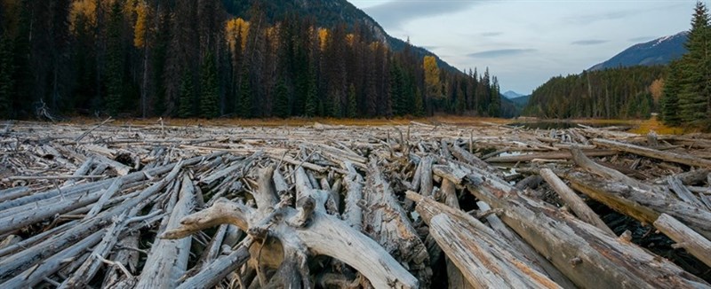 在加拿大努納武特的麥肯齊河三角洲,這些枯樹從周圍的森林順流而下,並在三角洲堆積了幾個世紀,它占地約 51平方公里(近20平方英里),是地球上已知最大的累積枯木群。