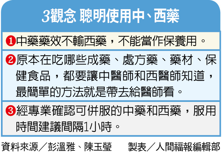 ❸經專業確認可併服的中藥和西藥,服用時間建議間隔1小時。
