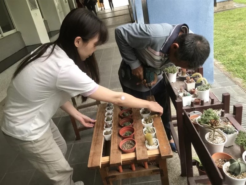 雲林縣石榴國中課桌椅再生銀行結合木工、藝術課程,發揮巧思將課桌椅變成公共藝術作品及研習材料,讓愛物惜物精神延續課桌椅生命。圖/石榴國中提供