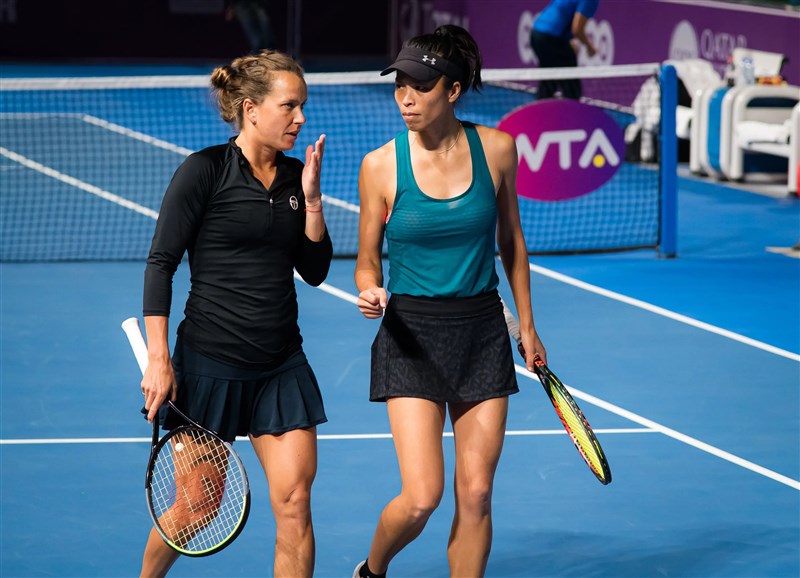 謝淑薇(右)與史翠可娃(左)復出搭檔首戰就打敗詹家姊妹。圖/取自WTA