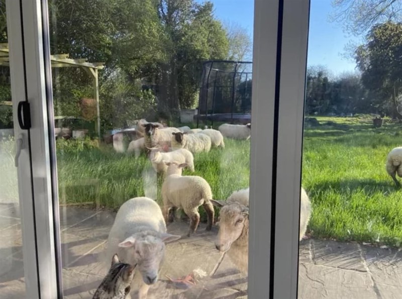 綜合外媒報導,英國阿什福德(Ashford)一名女子費雪(Diane Fisher)於4月20日早上六點多起床時目睹一幕讓她下巴都要掉下的畫面,大概有20幾隻綿羊突然出現在自家庭院內,一開始牠們非常有禮貌的列隊進入,隨即立刻在草地上散開來各自行動開心吃草。