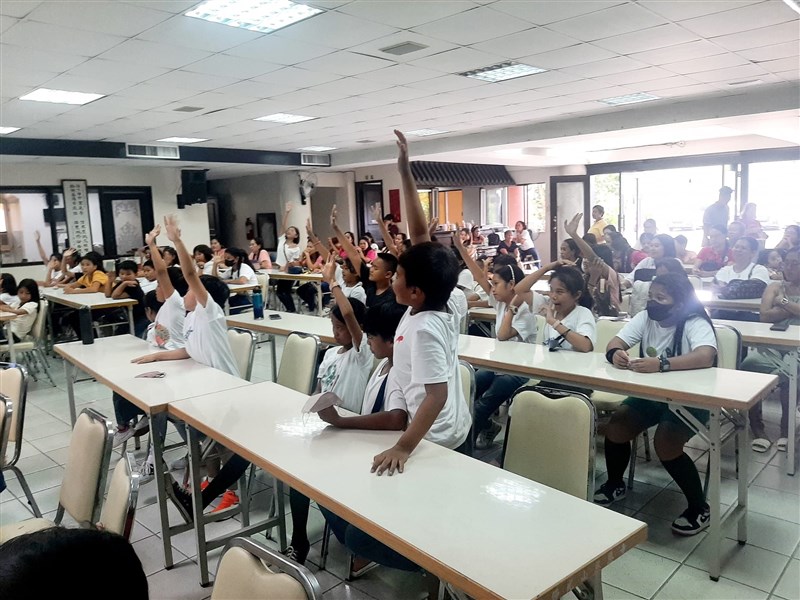 The Cadiz City young learners actively participating in the TAG Workshop at the Yuan Thong Temple dining hall cum lecture hall. photo/The Life News Agency