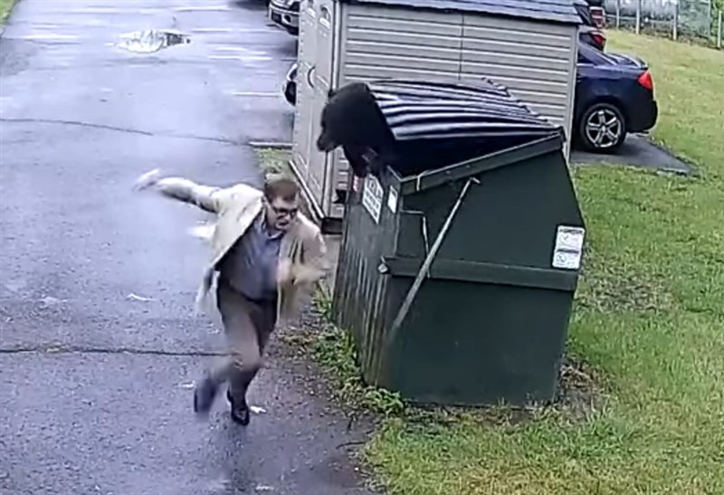 綜合外媒報導,美國西維吉尼亞州吉拉小學(Zela Elementary School, West Virginia)的校長馬許(James Marsh)於1日早上七點多走到垃圾場準備將上鎖的垃圾箱打開,結果沒想到他才剛解鎖掀開蓋子的時候,突然一個巨大黑影從箱子內竄出,隨後立刻狂奔出去,馬許見到這畫面嚇壞了,立刻轉頭拔腿就跑。