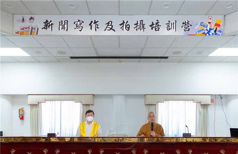 Venerable Hui Dong(right) gave a speech at "News Writing and Photography Training Camp." photo/The Life News Agency