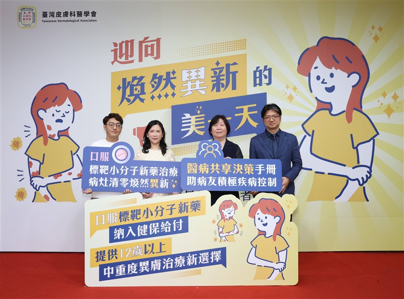 台灣皮膚科醫學理事長暨成大醫院皮膚部主治醫師趙曉秋表示,學會感謝健保自4月起新增給付新型口服標靶小分子藥物,用於治療12歲以上異位性皮膚炎中重度患者。醫學會同時發布「醫病共享決策」工具,幫助病人更加瞭解自己的治療方式。
