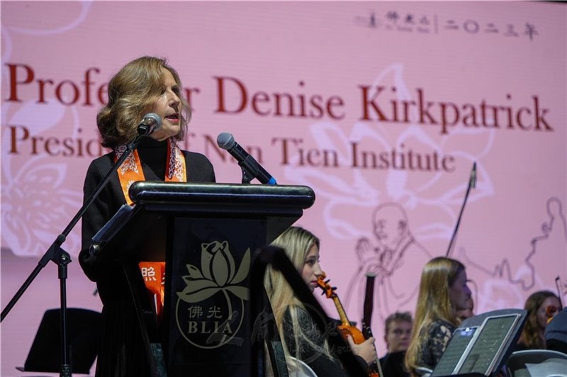 President of Nan Tien Institute Denise Kirkpatrick expressed her gratitude for Venerable Master Hsing Yun's establishment of Nan Tien Institute, which provides education for numerous students and unites the community.