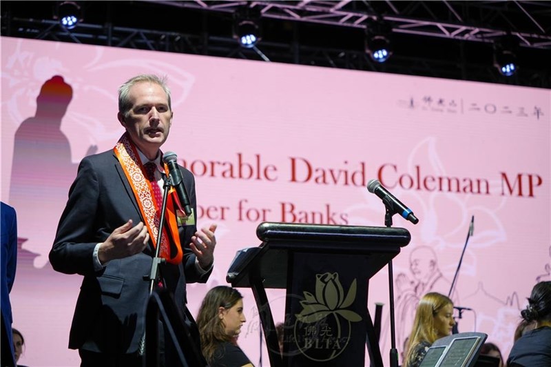 David Coleman MP pointed out that Venerable Master Hsing Yun's promotion of the Three Acts of Goodness has a great positive and constructive impact. photo/The Life News Agency