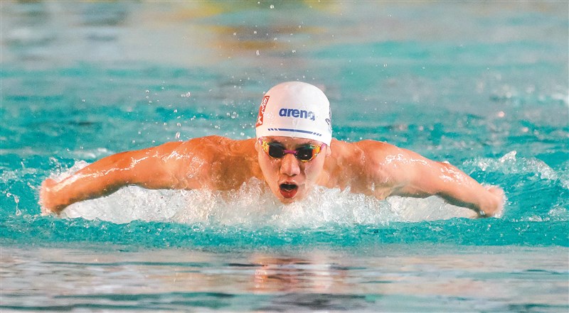 【記者張哲郢綜合報導】2023年全國大專校院運動會游泳池畔,「蝶王」王冠閎昨天代表台灣師大,在男子200公尺蝶式繳出1分55秒42佳績,順利摘金,更一舉達到國際游泳總會所設定的巴黎奧運參賽A標。