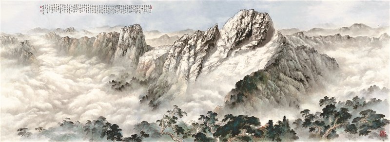 【記者曹麗蕙台北報導】「藝海遊踪──蘇峯男八十回顧展」即日起至八月十三日,於國父紀念館中山國家畫廊展出,集結藝術家蘇峯男百件山水景緻、花卉蔬果、雲海奇景等主題的創作。他透過實地考察,將台灣山川美景入畫,這次更展出多幅磅礡大作,如去年所繪寬二十尺長的〈巍峨玉峰〉。