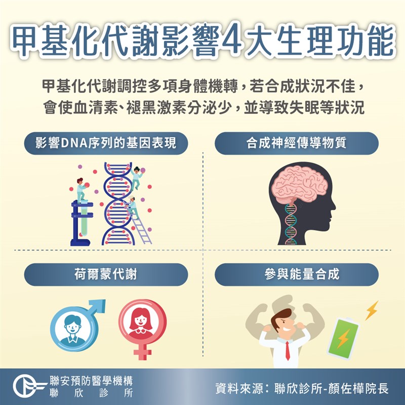 失眠元凶「低甲基化」 日常保養5祕訣 陳玲芳 |2023.05.09 語音朗讀 657觀看次 字級 大 中 小 醫師指出,壓力大的上班族、常常亂吃的外食族、喜歡挑食的偏食者、需要應酬者、睡眠障礙者,都是「低甲基化」族群。圖/pexels 【記者陳玲芳台北報導】身為社會新鮮人的王小姐,本就容易緊張、焦慮,就學期間就時常有「睡不好」的問題,殊不知,出社會後工作壓力大,「睡眠障礙」日益加劇,有時還得服用鎮定劑,才有辦法入睡。為找出睡眠不佳原因,王小姐前往聯欣診所進行「功能醫學」檢測,發現影響睡眠的最大關鍵,是「低甲基化」。醫師建議她補充高活性B群、鎂等可幫助「甲基化合成」的重要營養素,並提供壓力調適方法,約半年後,她的各項檢測數值,都獲得大幅改善。低甲基化 代謝機轉差面對現代人常見失眠問題,多數人第一時間都會聯想到「壓力」,殊不知,飲食或營養素缺乏,也可能導致失眠。因此,必須透過詳細問診,安排檢查,釐清失眠主因。圖/聯安預防醫學機構提供聯安預防醫學機構聯欣診所院長顏佐樺醫師表示,甲基化反應(Methylation)負責製造、維持及修復DNA,同時也調控身體相當多的機轉,如荷爾蒙代謝、解毒代謝,還影響免疫細胞製造、能量的產生等功能,同時也協助合成神經傳導物質,若合成狀況不佳,會導致血清素、褪黑激素分泌變少,人就容易睡不好。顏佐樺說,由於王小姐甲基化代謝機轉特別差,建議她補充高活性的B群、鎂等可幫助甲基化合成的重要營養素,並提供壓力調適方法,短短不到半年時間,各項檢測數值都大有進步。王小姐開心地說:「現在白天沒有那麼焦慮,同時生理期變得規律,也比較不會出現經前症候群,最重要的是,睡眠品質變好了!」何以單純補充營養素,就能產生這麼大的變化?主因是「甲基化」的運轉,十分仰賴B群、如B3、B6、B12等原料協助運作,尤其葉酸更是相當重要。若體內原料不足,甲基化運轉機制,就會受到影響。現代人多為外食族,飲食習慣偏向高油、高糖、多加工食品且少吃蔬果,導致容易缺乏「甲基化」反應的原料。圖/pexels 補充B群 請醫師評估儘管低甲基化者補充B群,即可有明顯改善,但要注意坊間常見的B群,所包含的劑量不一,且多以合成葉酸為主要原料,因此形式上比起活性葉酸,相對不利身體利用。因此,顏佐樺建議,補充之前,最好經過醫師評估,針對個人狀況開立不同處方、選擇合適劑量。現代人多為外食族,飲食習慣偏向高油、高糖、多加工食品且少吃蔬果,導致容易缺乏「甲基化」反應的原料。如果再加上應酬喝酒,為了代謝酒精,就會耗掉更多營養素。長期「吃得少、用得多」,便可能產生「低甲基化」問題。顏佐樺指出,壓力大的上班族、常常亂吃的外食族、喜歡挑食的偏食者、需要應酬者、睡眠障礙者,都是「低甲基化」族群。「預防勝於治療」,想避免低甲基問題,應注意日常生活習慣。保持運動習慣及調適壓力,是維持良好「甲基化」運作的祕訣。圖/pexels如何在日常生活中,維持良好的甲基化運作?顏佐樺提供民眾五大方向:一、補充活性葉酸及B群;二、多吃優質蛋白質及深綠色葉菜;三、避免精緻食品;四、咖啡因、酒精切勿過量;五、保持持運動習慣及調適壓力。 前一篇文章 職能治療 助長輩術後生活復能 下一篇文章 初夏潮溼悶熱 蔘茶飲保元氣 熱門新聞 01佛光山大學校長論壇 盼教育融入佛法2025.11.0802星雲大師全集⑲【佛教管理學②】禪門的管理法⑦2025.11.0803【養生百味】冬食淡素 防範疾病2025.11.0804鳳凰將轉中颱 下周二雨勢最大2025.11.0805電塔變身巨獸 奧地利新地標2025.11.0806陸航母福建艦服役 首採電磁彈射2025.11.0807更年力綻放 迎向第二黃金人生2025.11.0808高市早苗:台灣有事 日本擬行使集體自衛權2025.11.0809尼泊爾農民 古城晒稻米2025.11.0810【樹博士系列】土壤的祕密XV 水稻田減排新觀念IV 土地的溫柔革命 雲林大埤寫益生菌奇蹟2025.11.09 訂閱電子報 台北市 天氣預報 台灣一週天氣預報 相關報導 寒士吃飽30 楊婷婭籲助弱勢慢性發炎易罹癌、失智 葡萄、花椰菜修復細胞歲末傳愛關懷弱勢 謝祖武任公益大使罕病病友創作 綻放希望黃豆浸泡過再加熱 去除凝集素不脹氣台灣首款本土咖啡 台農1號亮相 作者其他文章寒士吃飽30 楊婷婭籲助弱勢罕病病友創作 綻放希望大稻埕走秀 視障者展現自信更年力綻放 迎向第二黃金人生飲食調理養肺潤燥 立冬防咳、過敏立冬宜養腎固元氣 和緩運動避免熬夜