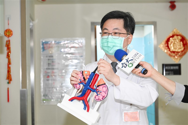 台大醫院原發性高醛固酮症中心揭牌,中心主任吳允升手持模型解說病因。圖/台大醫院提供