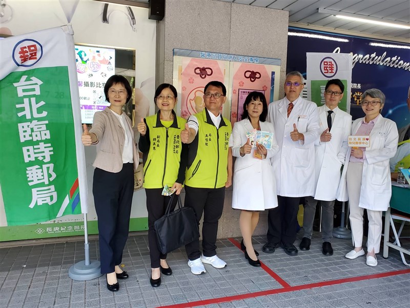 台北長庚婦產科於母親節來臨前,與中華郵政公司台北郵局攜手設立臨時郵局,提供有長庚醫療logo聯名的限定郵戳,共同傳遞好孕氣。圖/長庚醫院提供