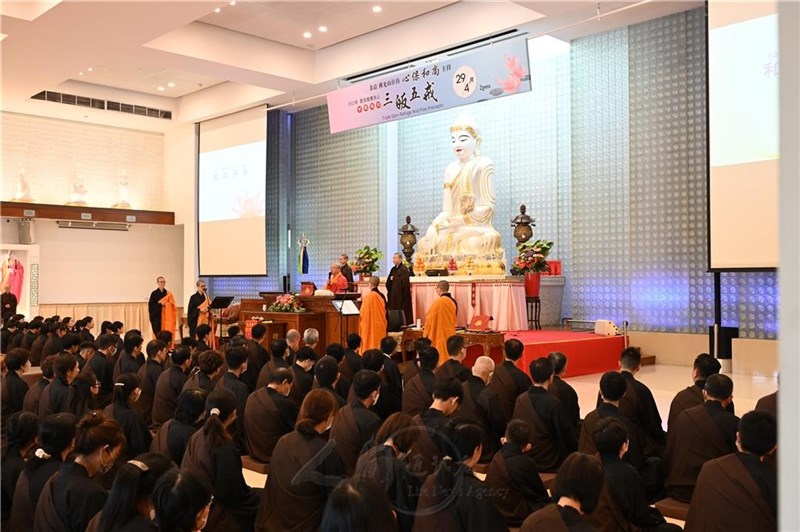 Most Venerable Hsin Bau also mentioned that in the past, when the founder of Fo Guang Shan, Venerable Master Hsing Yun, presided over the precept ceremonies, he would remind the preceptees that "I am Buddha" as a way to remind themselves to speak the language of Buddha and act in the way of Buddha.