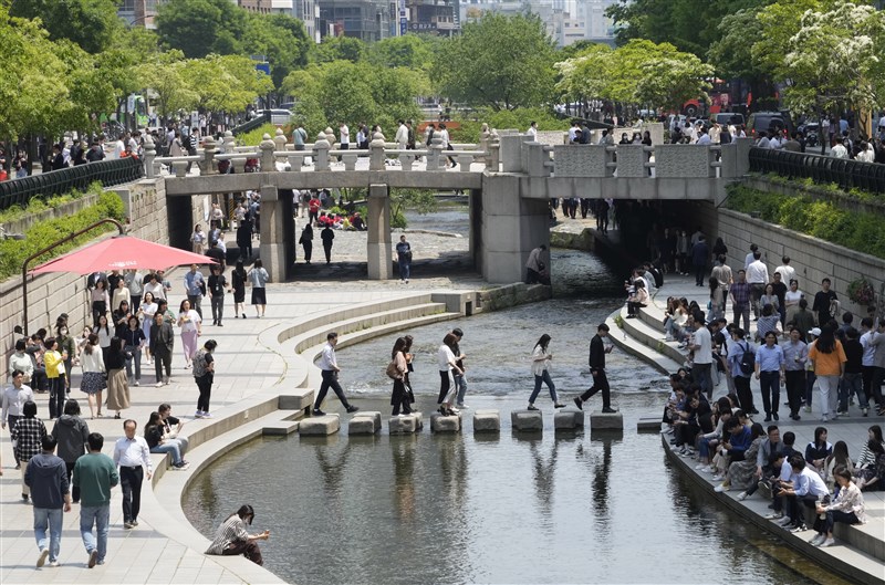 南韓政府11日宣布,6月1日起將新冠病毒風險等級從「嚴重」調降至「警戒」,現行就確診者的7天隔離規定也將取消。圖為南韓首爾。圖/美聯社