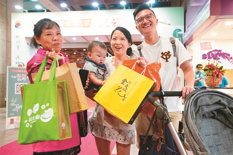 莊雯璋、管沛蓁夫婦攜同媽媽、1歲寶寶,開心展示戰利品。圖/人間社記者黃華安