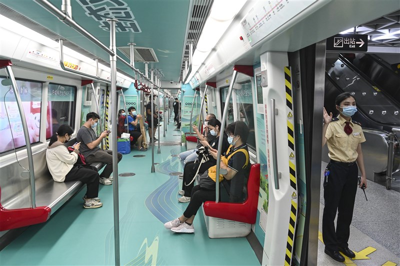 大陸一線城市北京、上海、廣州及深圳在2022年罕見出現人口負成長。圖為廣州地鐵搭車的民眾。圖/中新社