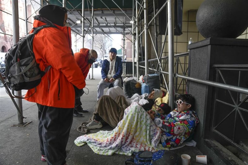 移民家庭躺在華森飯店外的人行道。圖/美聯社